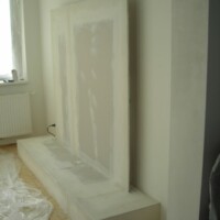 Diese Platten werden mit Schrauben an Alu Trockenbau Profilen befestigt und bilden eine tragfähige Wand, ohne dass Wände ausgehärtet oder getrocknet werden müssen.